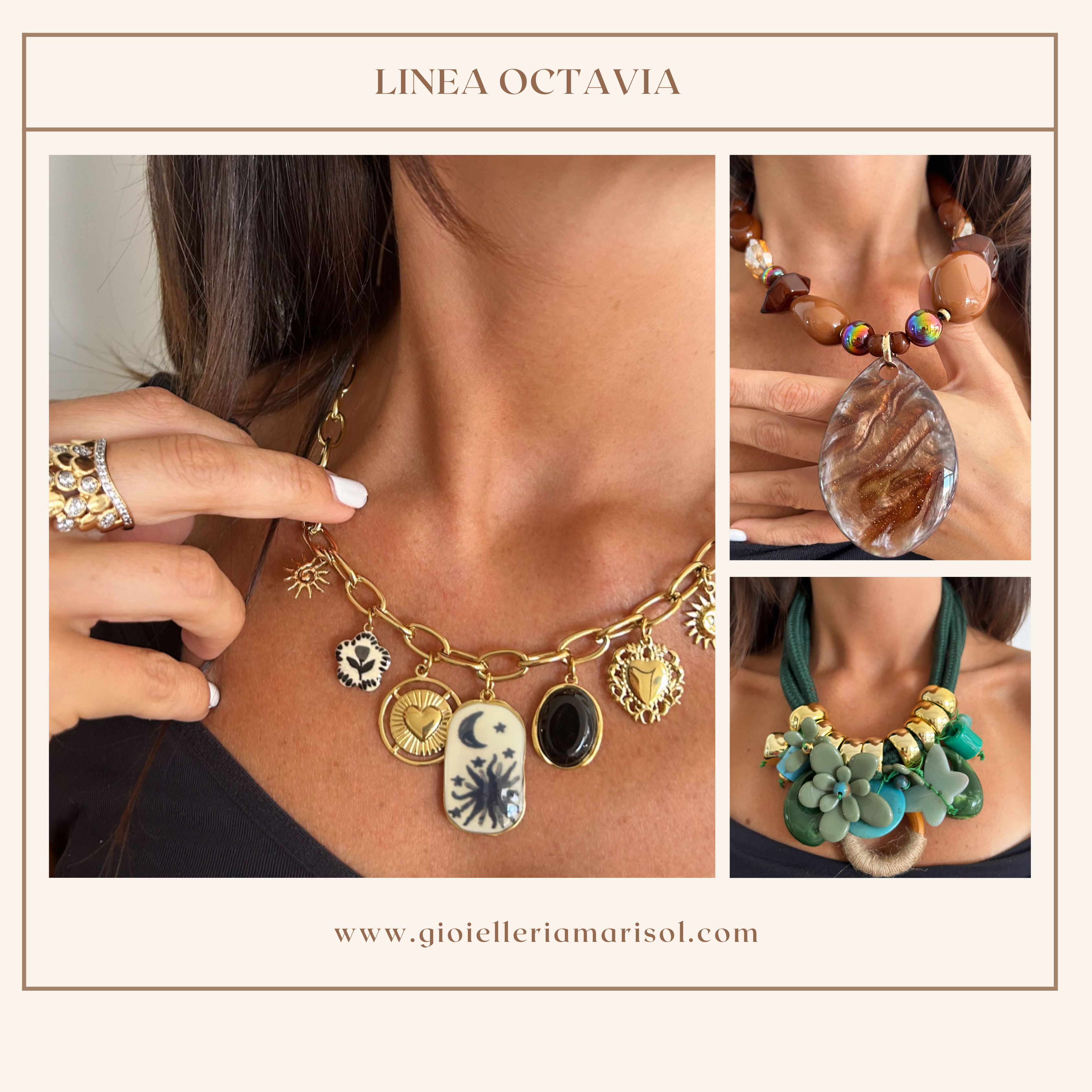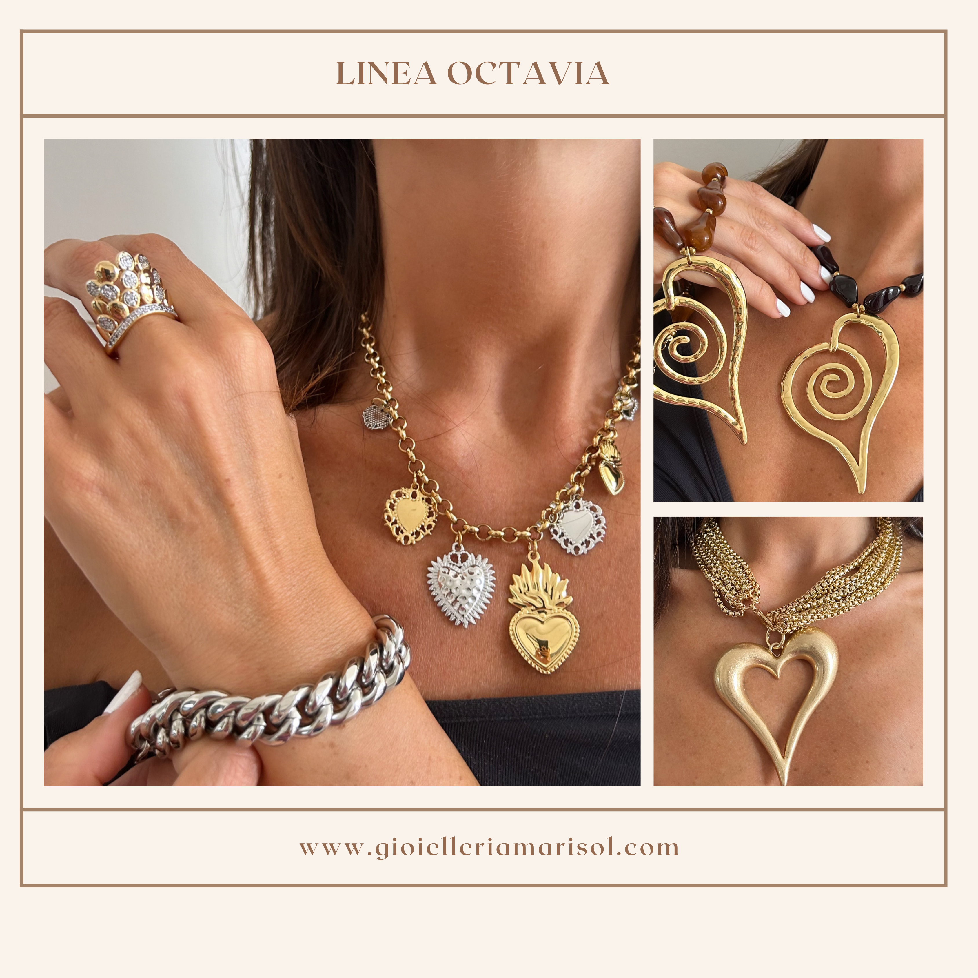 Un nome che evoca forza, eleganza e carattere. La linea Octavia raccoglie collane in acciaio e bronzo realizzate interamente a mano, ognuna diversa dall’altra: pezzi unici che raccontano la bellezza dell’artigianato e il valore dell’originalità.