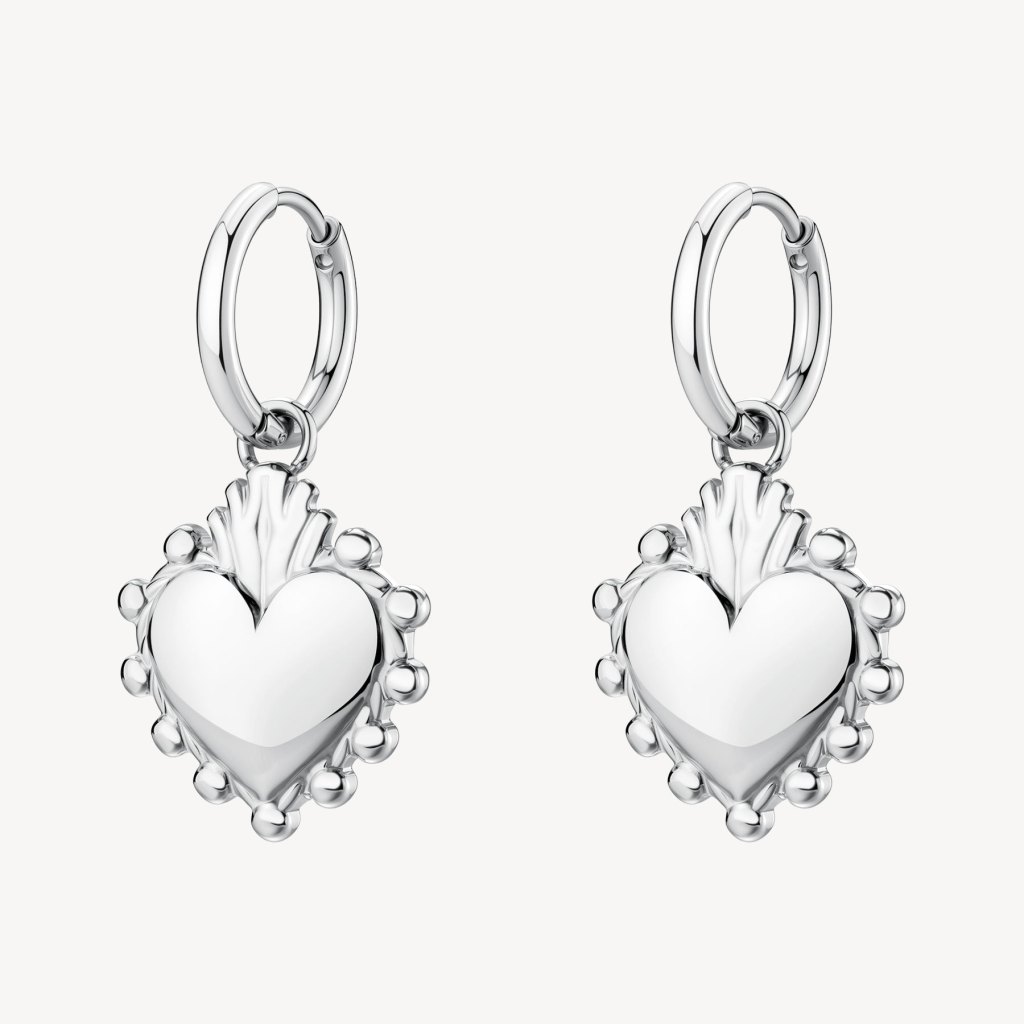 Orecchini a cerchietto in acciaio 316L con pendenti a forma di cuore.