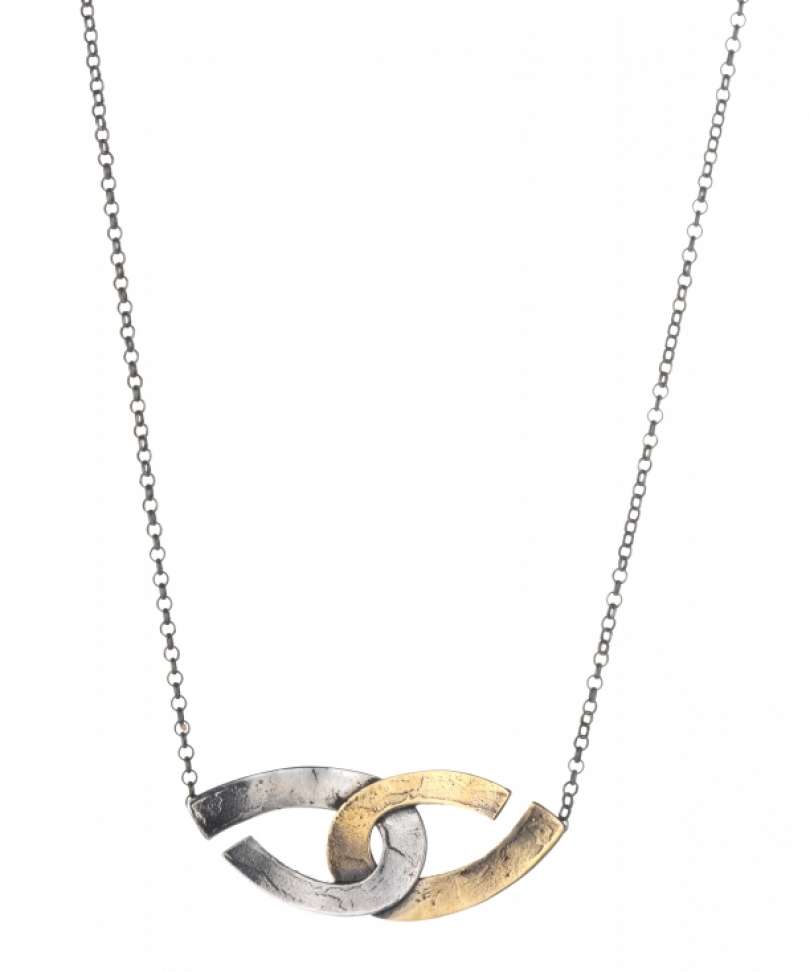 Ciondolo doppia “U” intreccio orizzontale in bronzo e argento con catena in argento